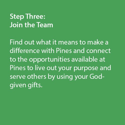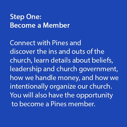 Next Steps is our three-part, monthly experience that's designed to help you grow in your relationship with God, learn about your God-given gifts, and become a member of Pines.